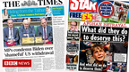 Most of Thursday's front pages lead on reaction from UK politicians to the crisis in Afghanistan.