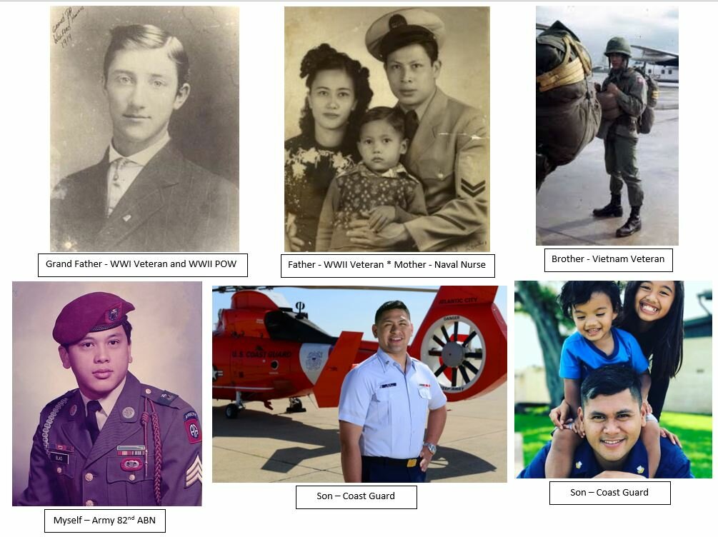 My father was an LDO mustang LT with 26 years of service in WW@, Korea and Vietnam. During the Vietnam era ny younger brother was a two year naval reservist. When I lost my college deferment I enlisted and we served together on the USS Claud Junes DE-1033 at Pearl Harbor. I put in eight years. Later on my youngest daughter enlisted and became cryptological linguist for four years mostly at the NSA. Years later her oldest son joined the WV ANG. One of my uncles flew bombers out of North Africa in WW2.