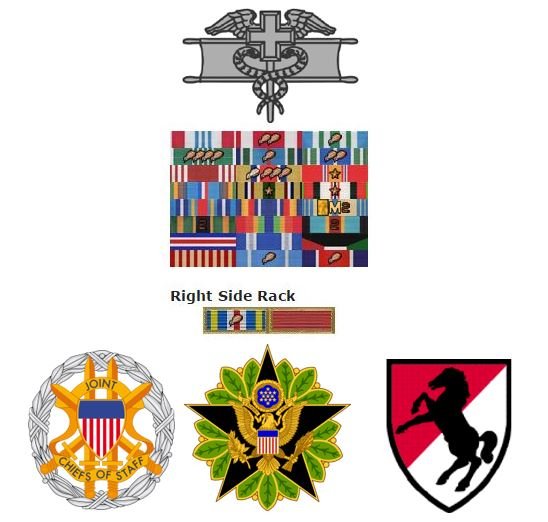 Maybe I'm a product of time I was in, but, barring a bronze star or higher award, the bottom of the stack was the most interesting to me. You could generally outline someone's career with those ribbons.