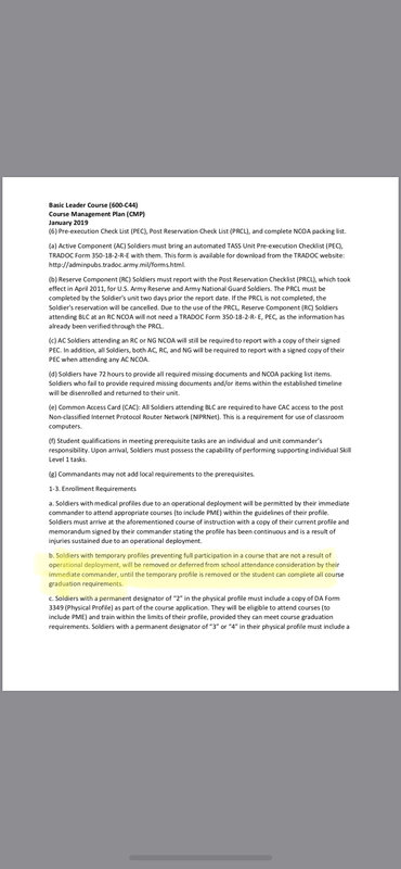 Unfortunately, I rolled my ankle and fell badly on my knee while practice running. My ankle is still swelling and I only have 1 week before I leave for BLC. I visited the doctor and get a temp profile for 1 month for no running, no jumping. I informed my squad leader and training sergeant for my injury, waiting for their response still.