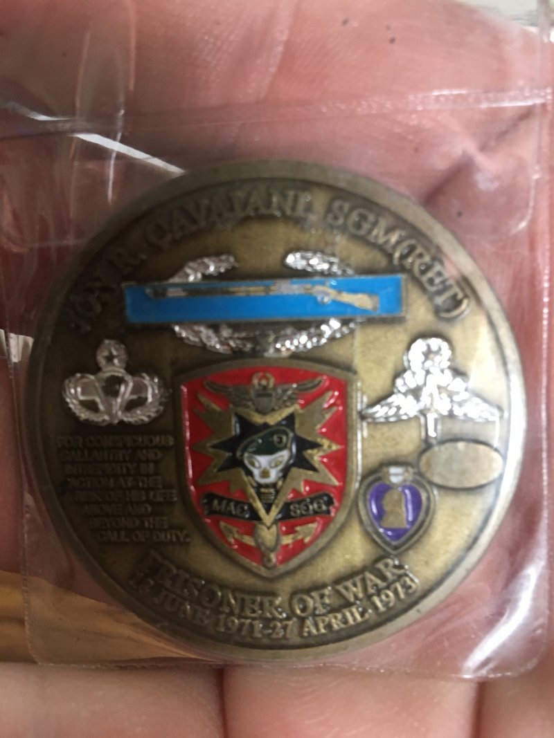 CSM Jon Cavaiani was a POW in Vietnam, and I was honored to meet him many years ago. In fact, I walked into the bar we met at years later (he wasn't there), and realized I didn't have my coin. I gave the barkeep a $20 and told her "Next time the Sergeant Major comes in tell him I forgot my coin" and she laughed and pinned my 20 to the wall. Sadly, he died a few years later, GREAT man.