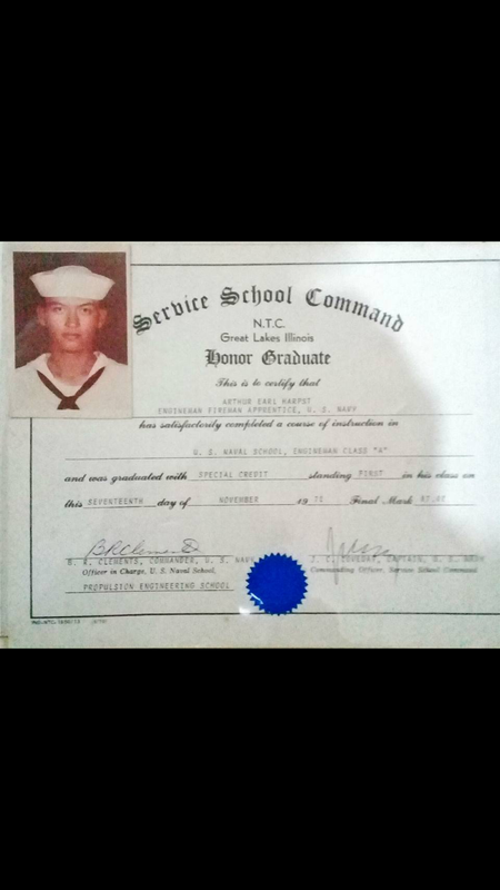My paternal cousin Artie Harpst, Chief Petty Officer, USN (Ret.), years of service 1972-92, last boat was the USS Kincaid, born 10 Mar 1953, passed away 21 Mar 2018. RIP and God bless, 'Cuz.