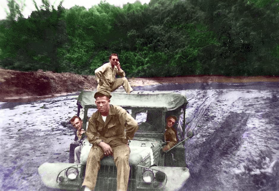 My Dad, T-4 James Potter 24th Inf. Div. Manila Philippine Islands, 1945. Was drafted in 1944 while he was a senior in High School. Did not graduate High School until 1946. Went on to college at Murray State in Murray KY. Died in July 1972. (sitting on the hood)