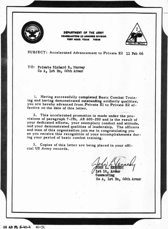 Going through old documents and photos. One for each company (4) received this advanced promotion on day of graduation. Cadre told me they ask for a fifth for me. I was pleasantly surprised.