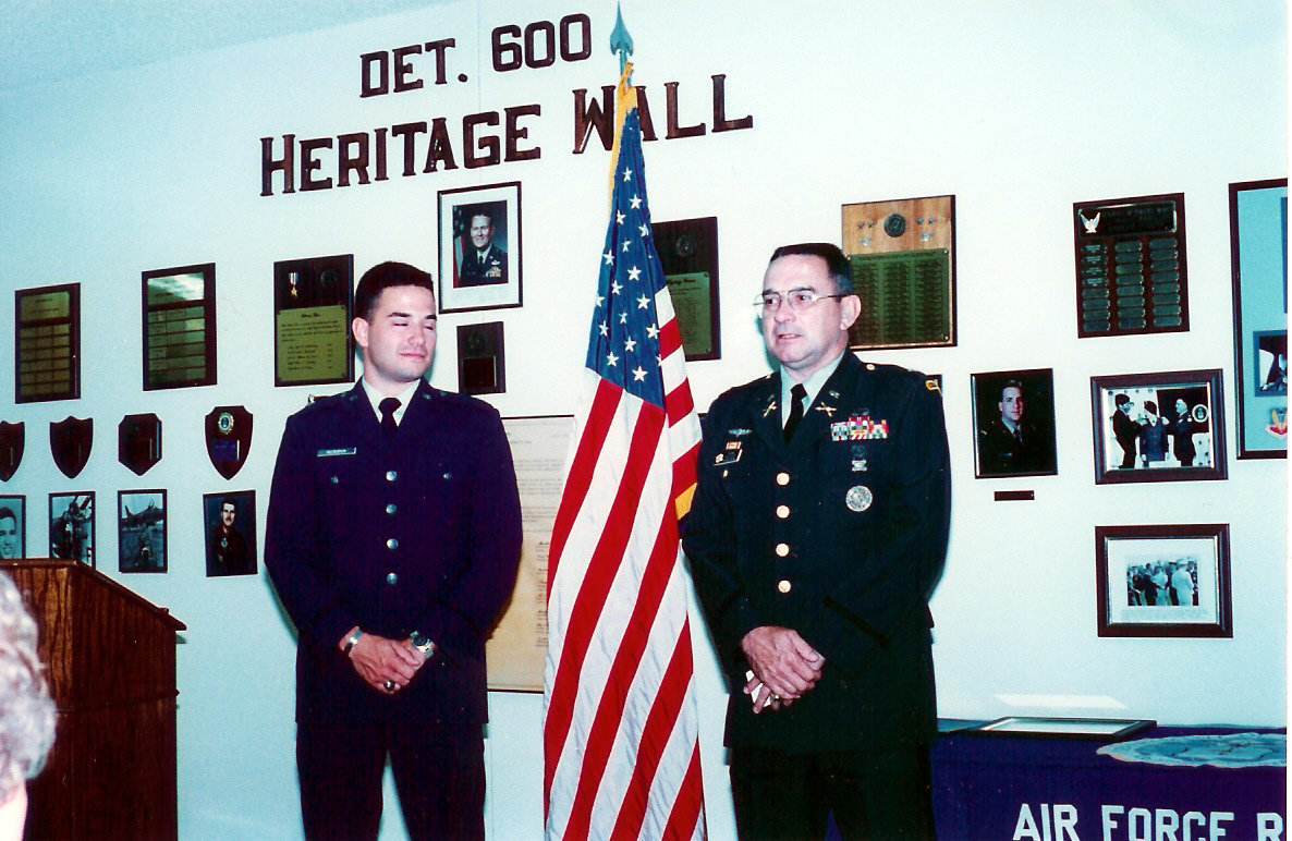 The first was while at Chanute. I was in phase II so we could leave the base, but only in uniform. The other was after graduation and I wanted a picture where Major General Carl Smith stood. I carried the Texas flag during graduation which might be while I love living here so much.