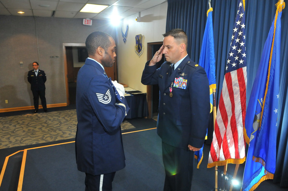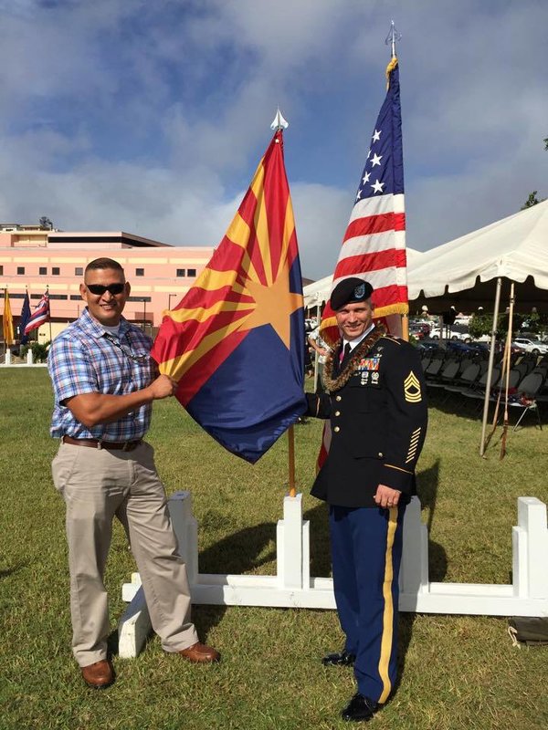 This is my last active duty salute, given during my retirement ceremony, to a flag I carried home from Afghanistan. Prior to this, the flag was carried by my cousin on an F-18 mission over Afghanistan, from the USS George Washington in the summer of 2002 while I served on the ground, attached to the 455th AEG (A-10 Unit) at Bagram Air Field. Years later, it returned to Afghanistan with me, and it was the last US flag to fly over Camp Estelle, Shindand AB, on the day the 838th AEAG (Air Advisory Unit) was moved to another location (two days before I redeployed in Feb 2014). Shortly after my return, I had the flag flown over the 9/11 Memorials of the Pentagon and the World Trade Center. It now sits proudly in my Shadow Box.