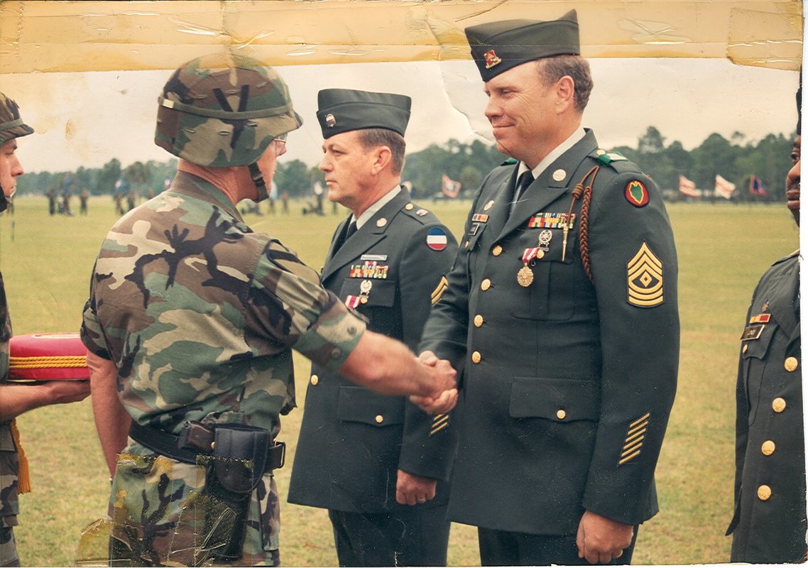 Last "good" photo of me in uniform prior to my promotion to SFC a couple years later. Self-portrait as I used to run the DA photo lab at the time. On the right, my grandfather after BT during WWII.