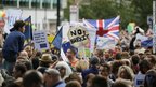 Tens of thousands of protesters angered by Britain's historic vote to leave the European Union marched down London's Park Lane on Saturday.