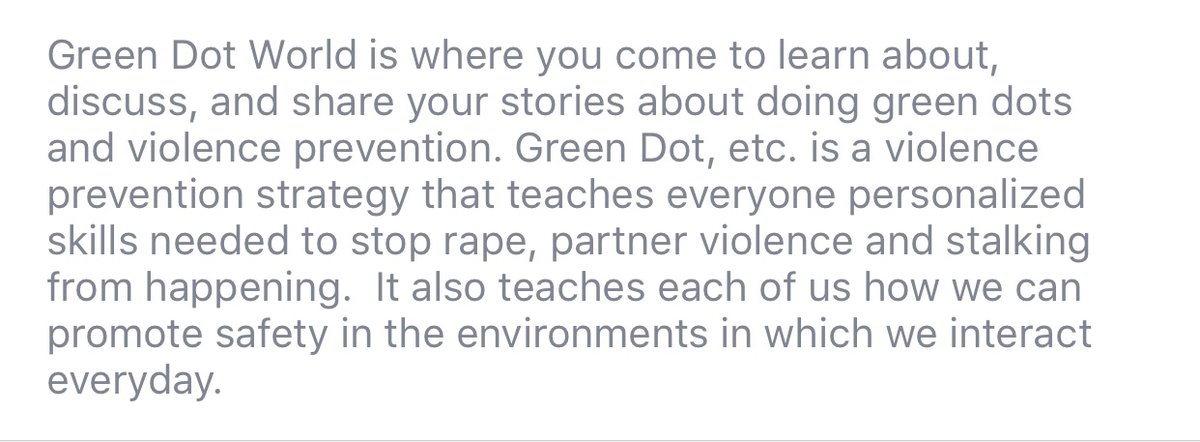 Green Dot World is where you come to learn about, discuss, and share your stories about doing green dots and violence prevention. Green Dot, etc. is a violence prevention strategy that teaches...