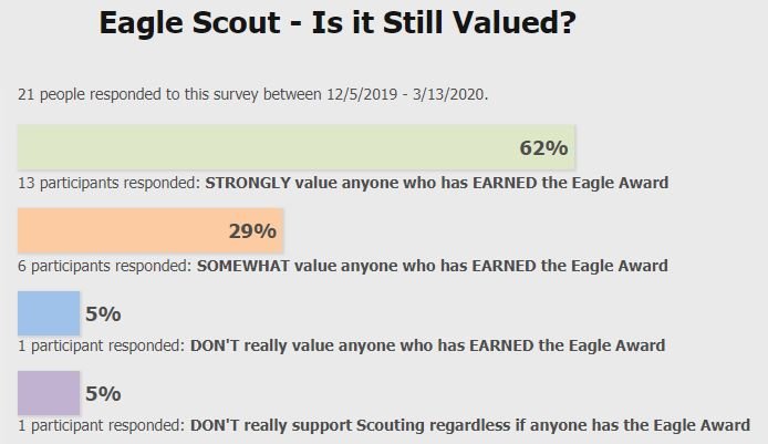 I am asking the question because there is a "media biased perception" in the greater community that scouting, especially as a result of its "sexual abuse" issues, is not valued and that the Eagle has no value to many. But, this is in a limited number of circles that seem to have the biggest mouthpieces and largest axes to grind for various reasons.