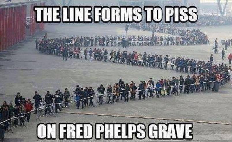 I hope this asshat gets to meet "his god" in the afterlife; should be a 'warm' welcome. It is also nice to see that at least some of his family saw the light and left this 'church' that preached hate and bigotry. I'd like to buy the land across from the Westboro Baptist Church and install a few choice billboards: