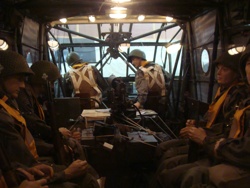 BUT, if you're so inclined, and want to see just how flimsy these were, there's a Waco glider on display inside Pratt Museum that you can walk thru. Think of aluminum tubing from lawn chairs covered with an outdoor awning type material. Steering wheels from a Soap box derby car, operating tiny steel cables to steer, and the least trained pilot with the largest set of cojones ever, and you're on the right track. The dummies in the pic have 2/327th clubs on their helmets.