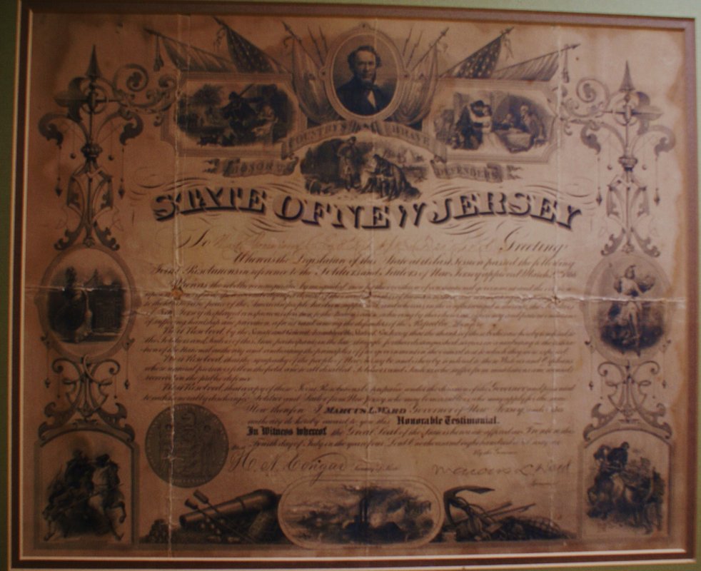 This is a print given to every person that served in the Civil War from New Jersey.