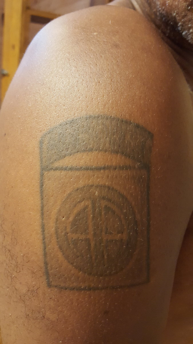 If you do want one while in; don't be like the kid beside me in formation on the first day of Jump School. We were in our T-shirts and one of the blackhats noticed a bandage on this kid. This blackhat asked what happened and the kid told him the truth. He had a tattoo of Jump Wings on his arm. Long story short...don't ever get a tattoo for an award you haven't earned yet. Life will go a lot easier for you.