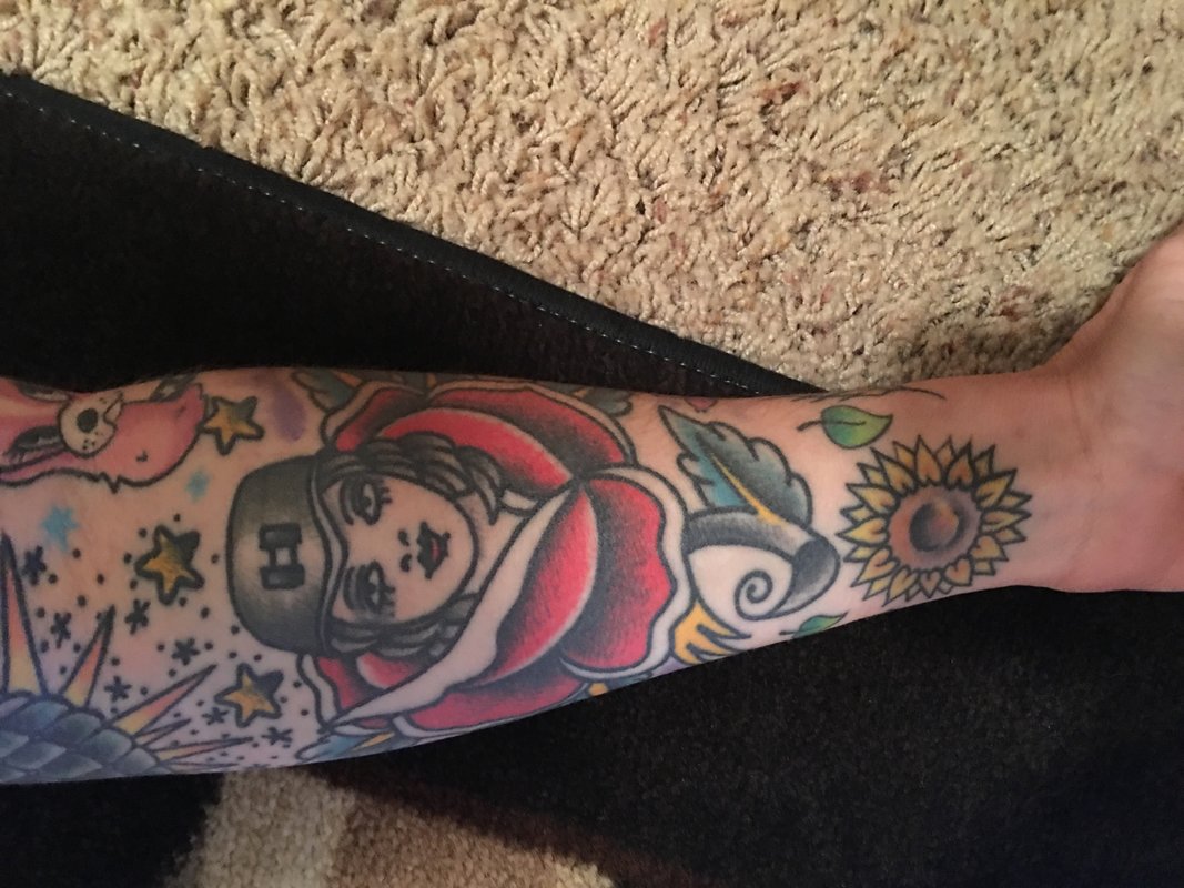 I am a heavily tattooed person.. some are military themed.. most are just what I call my portable art collection. All mine are old school/traditional type.