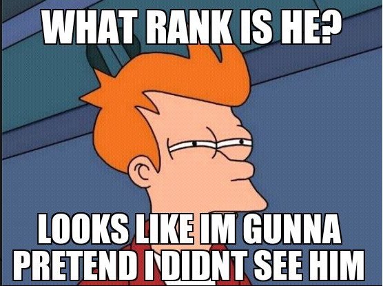 People can look very different at 0600 out on the PT field compared to 0900 in the office. While I may know everyone in my unit, I certainly have not met all the other personnel on base that PT. It is nice to know if you are dealing with a dumb ass junior officer or a smart ass junior enlisted.