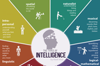 This infographic shows 9 types of intelligence, described in Howard Gardner book "Frames of Mind: The Theory of Multiple Intelligences"