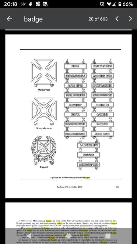 Also, on a related note, how would one wear multiple levels of qualification for multiple weapons at the same time? I was told it has to be on your ERB to be worn, but also told only 1 weapon goes on your ERB. Can someone clarify? I'm not S1 and dont have a lot of experience with this.