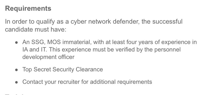 It’s all accurate. You must be a SSG or SGT(P) to apply. It’s an application MOS, meaning you apply and if they like what they see, they’ll accept you. Once you’re accepted you bring that memo to your career counselor to reclass. This IS NOT and entry level IT MOS.