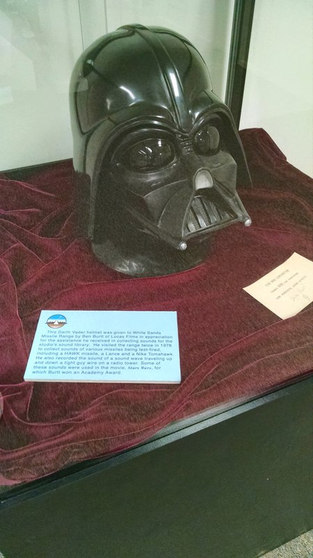 You may be wondering why Darth Vader's helmet is on display at the WSMR museum. A lot of sound effects for Star Wars - A New Hope were recorded on WSMR. Darth Vader's helmet was given to WSMR as a token of appreciation.