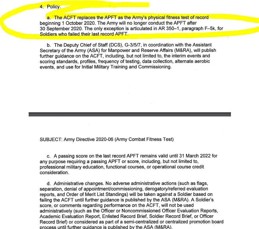 SFC Casey O'Mally - if you actually read the paragraph, it doesn't mention the ACFT implementation at all ;o)