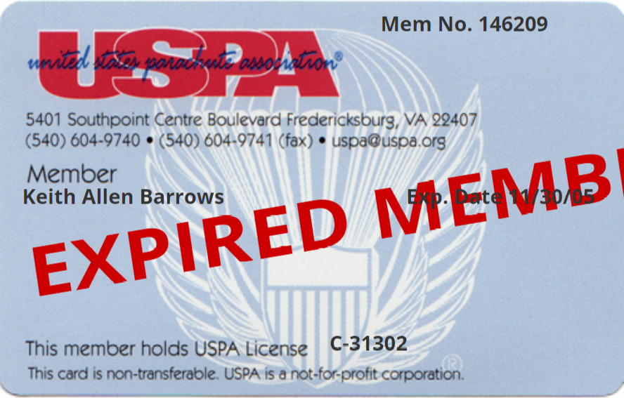 USPA license C-11083, and USPA Jumpmaster and Instructor ratings. FAA senior rigger certificate. Having blurted all that out, my last skydive was on 31DEC76!