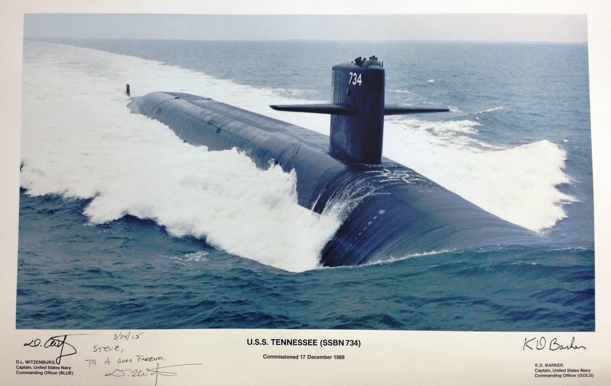 PO2 Steven Erickson, here's a follow up (with a photo) to my comment above. My friend, Captain Dennis Witzenburg, was the first commanding officer of the Blue Crew of the USS Tennessee (SSBN-734) when she was commissioned on 17DEC88. This photo was taken not long after commissioning. Although hard to discern, he's second from the right (the tallest head).