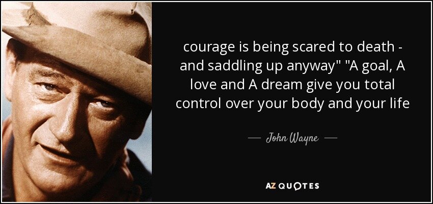 Courage to me means taking a risk based on everything that is taking place within sight or hearing and after quick evaluation, moving ahead with confidence as long as you are hurting no other innocent entity that might be involved.