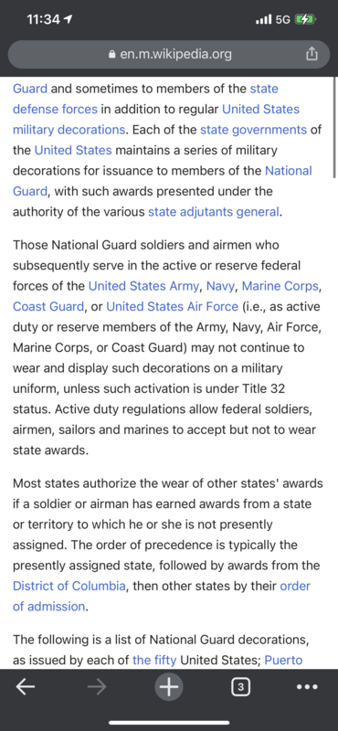 I’m NG to active duty, and know state awards aren’t authorized for wear on active duty but heard there was some exceptions, specifically the emergency service ribbon. Can anyone give guidance on this? Can’t find it in 600-8.