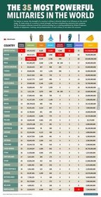 So I was searching around the Internet when I found this breakdown of military strengths from around the world. At first I thought, "Of course we're number 1!" Than I took a second look, our military really isn't that large in the scheme of things! I couldn't decide why we're number 1, is it due solely to the amount of aircraft we have? Are we number 1 because we spend the most on our military? Is it both? Why does North Korea have so many...