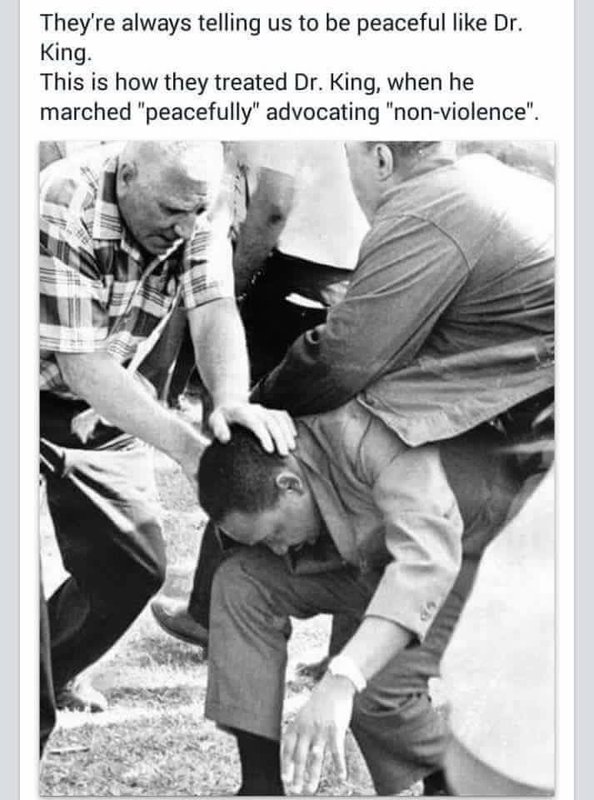 It's funny that you bring up MLK. Who was violently killed by the same people who he was non-violently protesting. It would seem that non-violence didn't help him. Decades later, were still dealing with the same situation. It seems that non-violence is ineffectual.