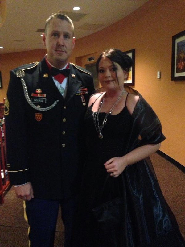 That definitely looks like the female WWE wrestler Medusa/ Alundra Blaze. She was inducted into the hall of fame recently and her husband was there and he is active duty. Pretty sure that is them.