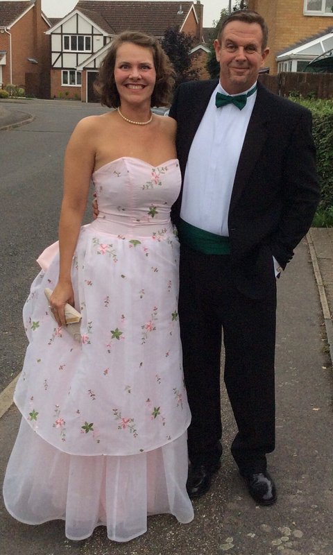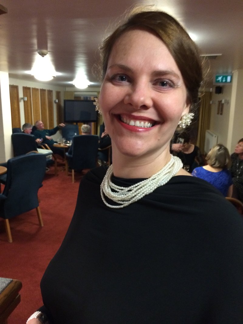 Pictured, we see two gentlemen in uniform. One in Mess Dress (White Tie), and one in ASU Dress (Black Tie). We see a number of ladies dressed Formally (in gowns), while the lady showcased is not.