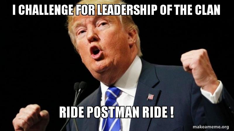 POSTMAN ...He invoked Law 8 ...He challenged for leadership of the clan ...Ride Postman ...RIDE !!!