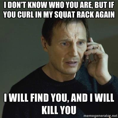 The sad part is they were all curling about 75lbs, I can curl 75lbs...like seriously guys, aren't you embarrassed? I always say that if you to curl in the squat rack, that most mean you aren't strong enough to lift the bar all the way to the ground.