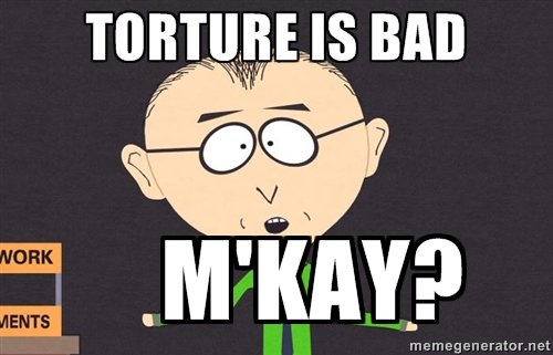 It seems that a lot of people in favor of these "enhanced" interrogation methods are under the assumption that those being "interrogated" ACTUALLY have something worth listening too. Statistically, there is no way every individual apprehended is actually holding actionable information.