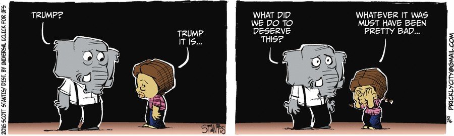 Can't disagree. However, the fight card now includes two bouts, Trump vs the GOP and Sanders vs Clinton (notice I'm refraining from snark by not giving the "fighters" ring identities). Which for you is the main event today?