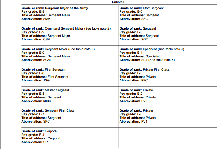 <P><SPAN style="COLOR: black"><FONT size=3 face="Times New Roman">E-5 thru E-8 is addressed as Sergeant.</FONT></SPAN></P>