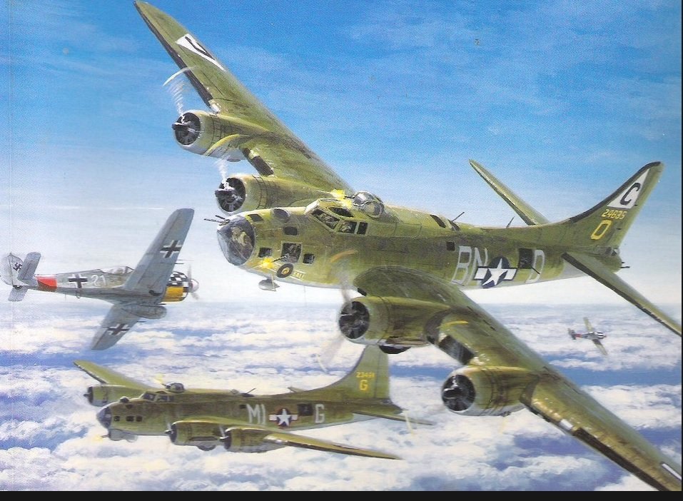 Famous B-17 '8 Ball' of the 303rd BG in combat with the Luftwaffe. The GAF planes would dive straight through the formations at closing speeds of up to 600 mph.