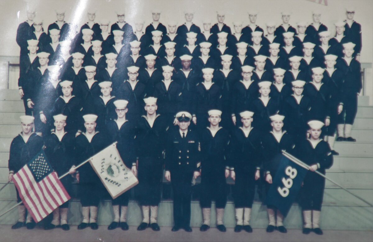 SHC George Karahos, Company 668, Great Lakes, IL. Formed 10 November 1966. I am directly to the Chief's left