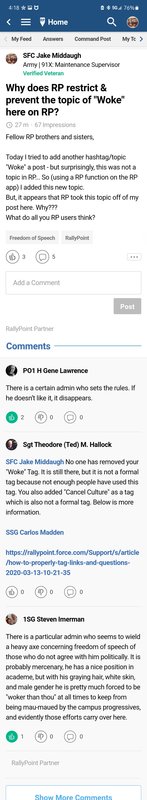 When this was posted (see attachment), only two topics were showing in the first post (freedom of speech & Rally Point) - and the other two ( that I also added in the initial post) were woke & cancel culture, but these two did not show on the first post...