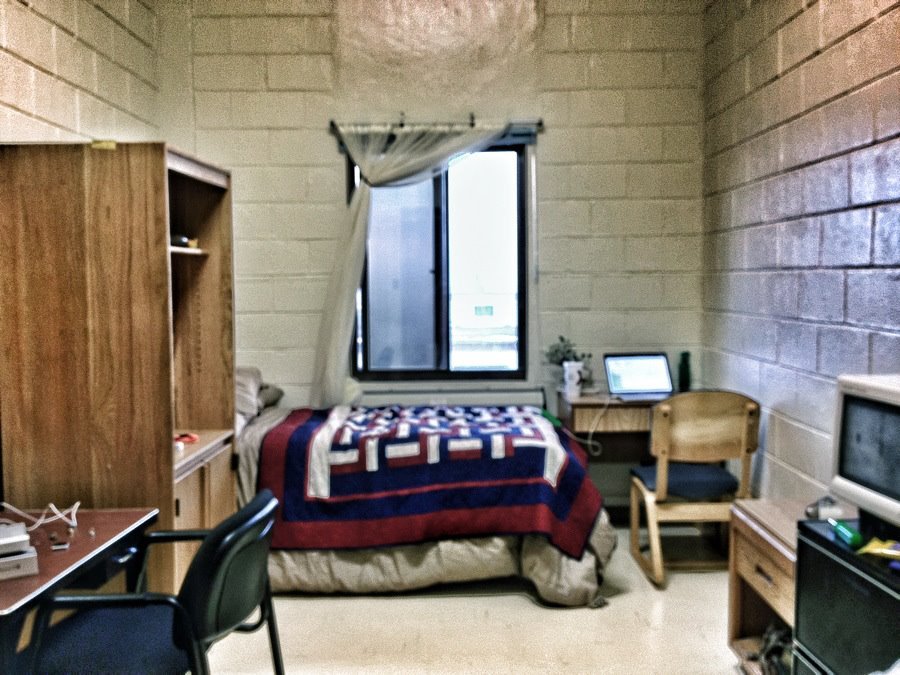 Now, I will post a picture of the barracks I am staying at with the furniture they provided when I moved in. Community bathroom, one shared kitchen on the ground floor, and 2 washers/dryers per floor+4 on the ground floor which is occupied by offices. Can anyone legitimately say that that room is worth $2200/m?