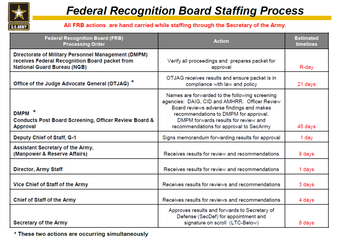Can anyone tell me why the process takes so long for RC officer/warrant promotions to run through the FedRec cycle? I'm an ARNG officer and I've had my state promotion orders for CPT since the middle of April. I've been tracking my packet on the ARNG-G1 website and it was awaiting addition to a scroll until a month ago and last week the scroll was ready to start the approval DoD cycle. Thoughts?