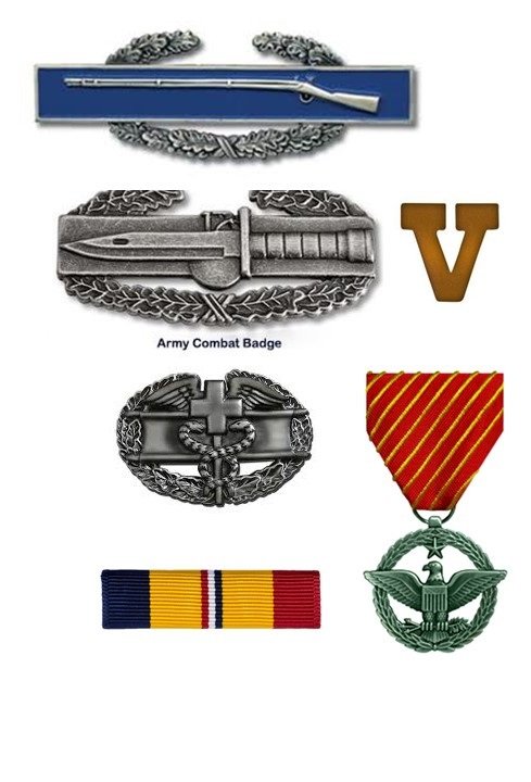 - Combat Action Badge, Combat Medic badge, Combat Infantryman Badge (Army)