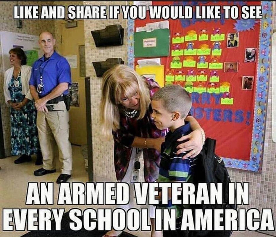It makes perfect sense and it can be done quite inexpensively I don’t want to be mean but I have spent my whole life since I was seventeen years old in the military and law enforcement and I have lost count of the number of times I sworn an Oath to uphold and defend the Constitution of the United States of America against all enemies foreign and domestic I have been shot at and missed and shot at and hit. Down here we have so many retired law enforcement officers and retired military veterans that you could get them to do the protection for the kids for free! THE WIVES WOULD BE SAYING PLEASE GET HIM OUT OF THE HOUSE HE IS DRIVING ME STARK RAVING MAD!!!!!