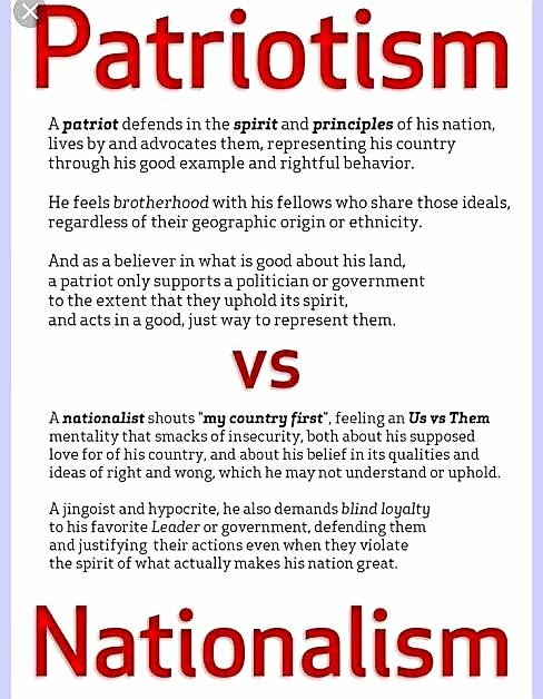 A patriot... You don't need to love your government but you need to love your country and its people. You might not like all the people or who's in charge but a patriot isn't fair weather. A patriot will love and support their country in good times and bad and if necessary suffer hardships for their country. A patriot doesn't follow blindly and should be full of questions for the good of their country and their citizens not just themselves.