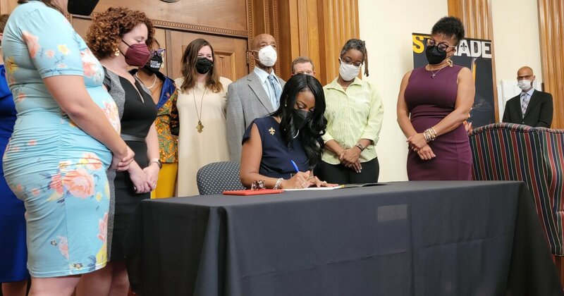 “A few weeks ago, I stood in this very spot, and I said I would fight like hell to make sure St. . Louisans can access the reproductive health care they need,” Jones said during a signing ceremony at her office in City Hall. “Today, we won the first round in the ring.”
