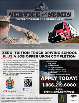 We are proud of our veterans and many of them are in management and director positions throughout the company. You will be proud to be a part of this company and team and wear the title of a C.R. England Honored Veteran on your shirt or hat.