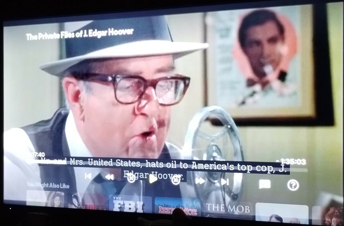 "The Private Files of J. Edgar Hoover", is a 1977 movie made in the decade of his death. I like this movie version because it captures more accurate details and culture. The actors are those from the era. Hoover started out as a very idealist lawyer working for the Bureau of Investigation. This is a good movie and it is streaming on TUBI, free access.