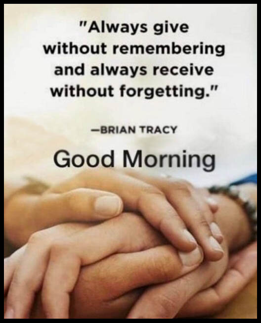 Always give without remembering and always receive without forgetting. Good Morning.